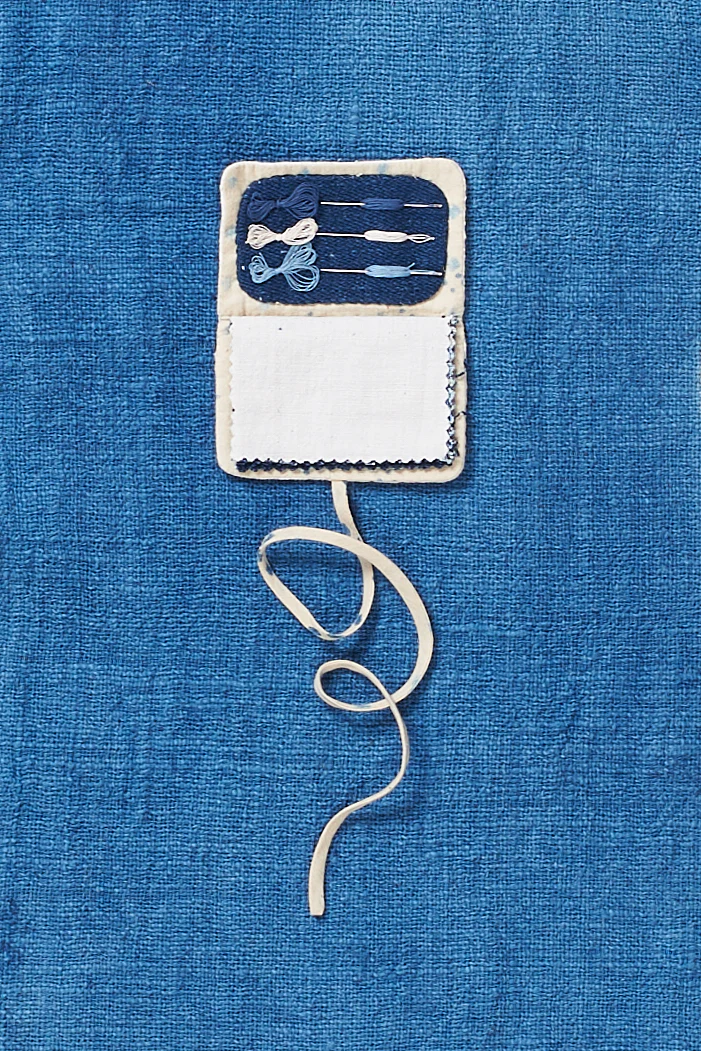 This Sewing kit is a small package made from reclaimed patchwork fabric which includes a set of needles, threads, and pieces of fabrics. Perfect for all types of mending.