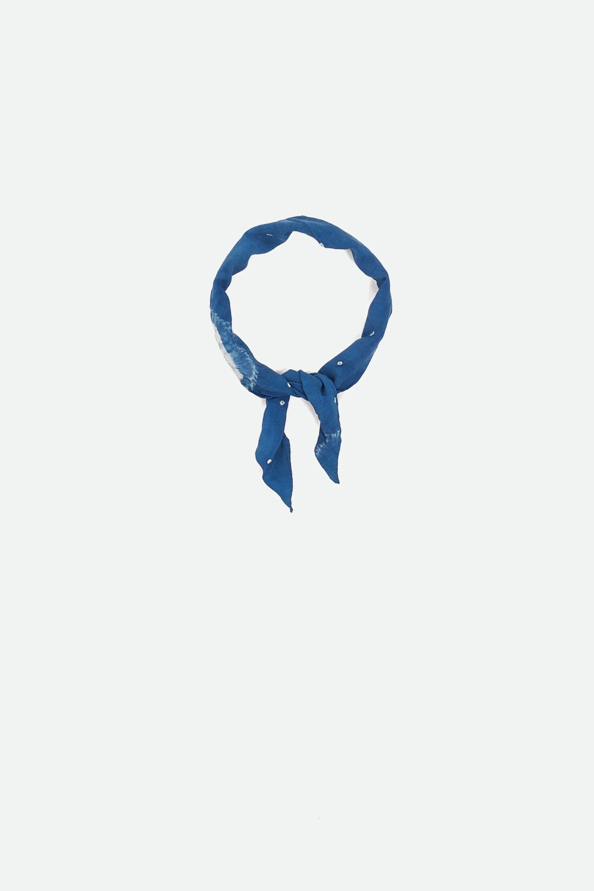 An elegant hand-woven scarf being a statement accessory, made in fine silk featuring a unique pattern of motifs created through a combination of Ori Nui and Maki Nui shibori.