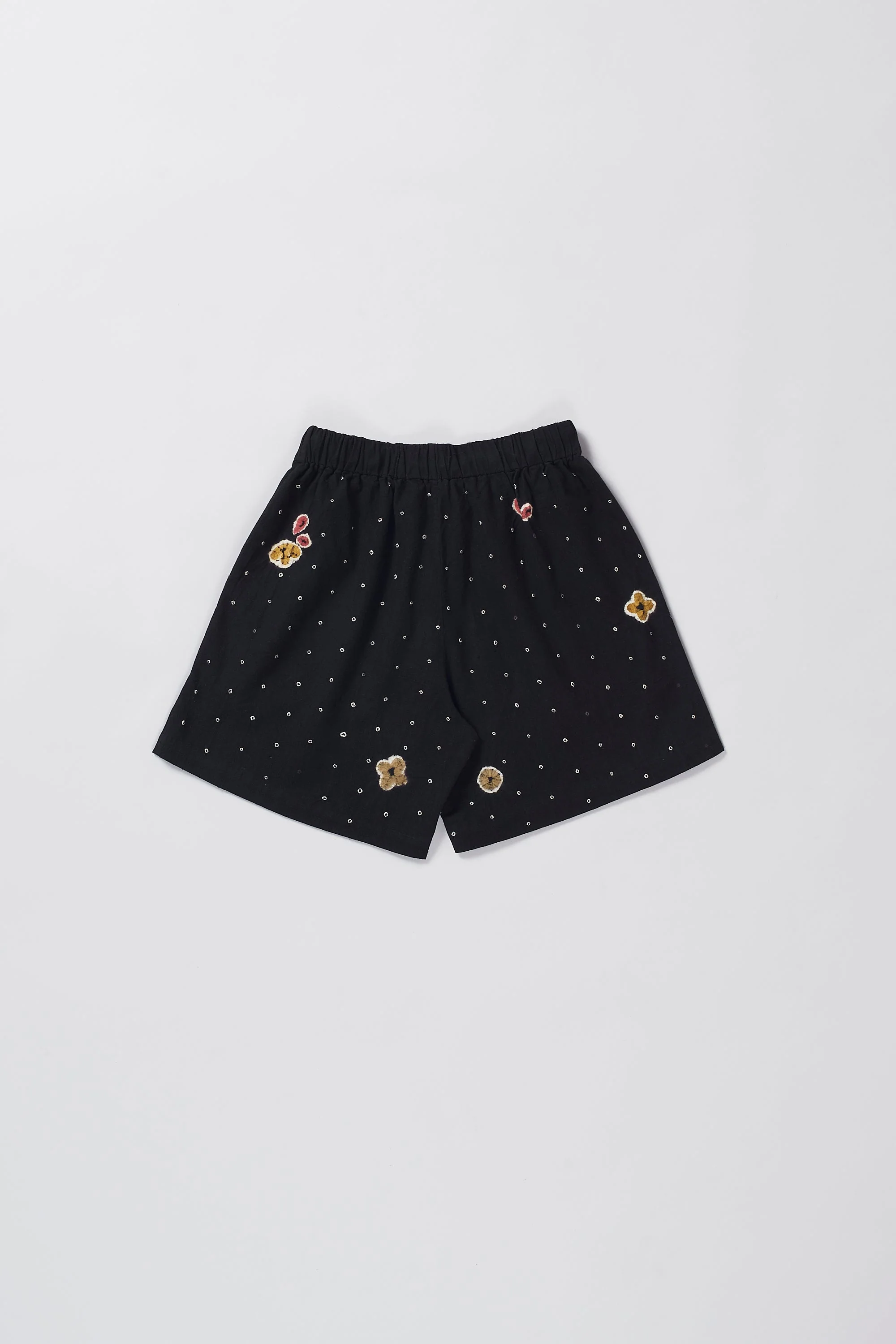 A pair of unisex drawstring shorts made in fine cotton. Crafted with a blend of bandhani and multicoloured handpainted shibori motifs.